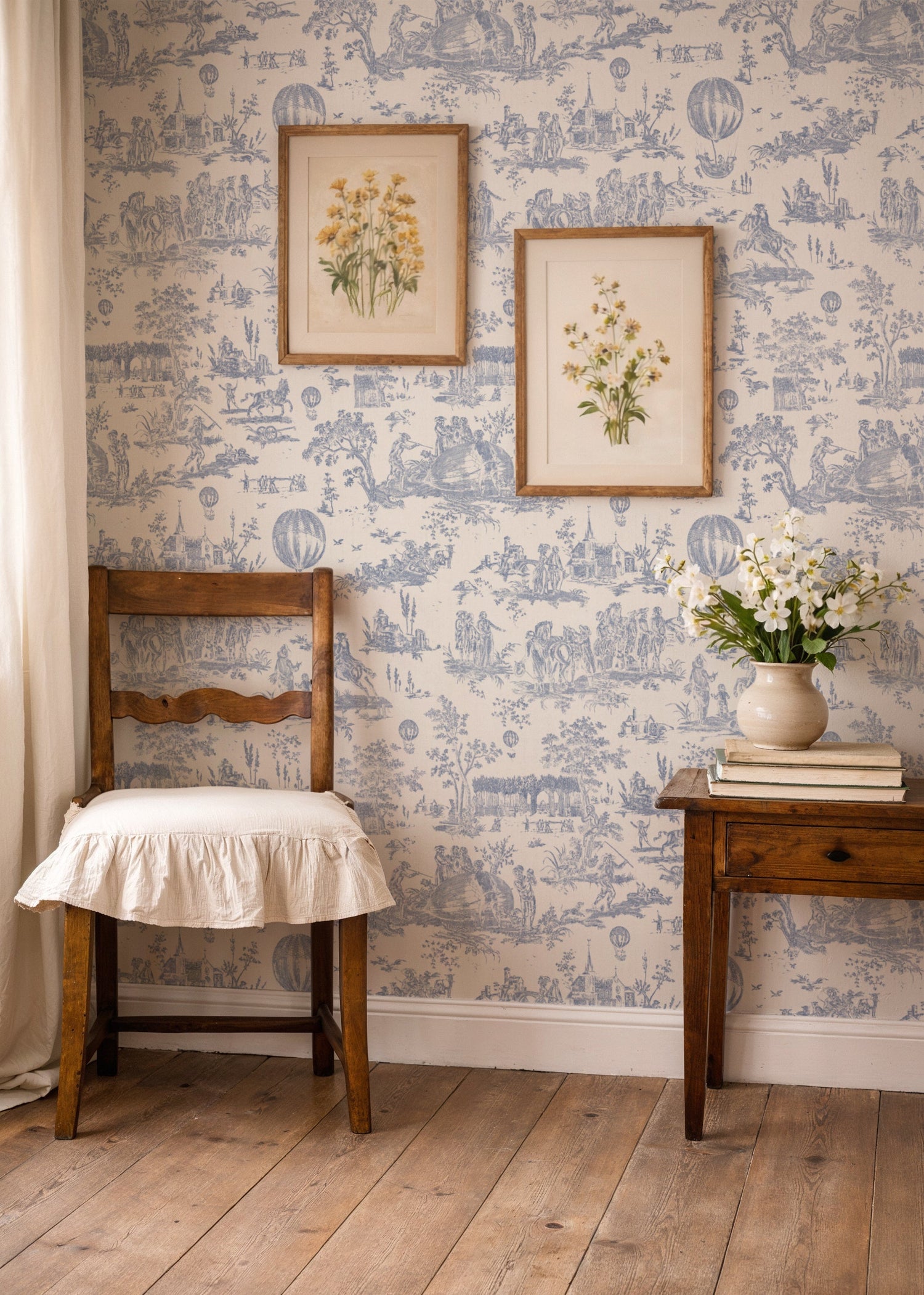 Transforming the original textile into a large-scale wallcovering required careful digital reconstruction—every line, scene, and detail was meticulously redrawn and refined to retain the character of the 18th-century print.