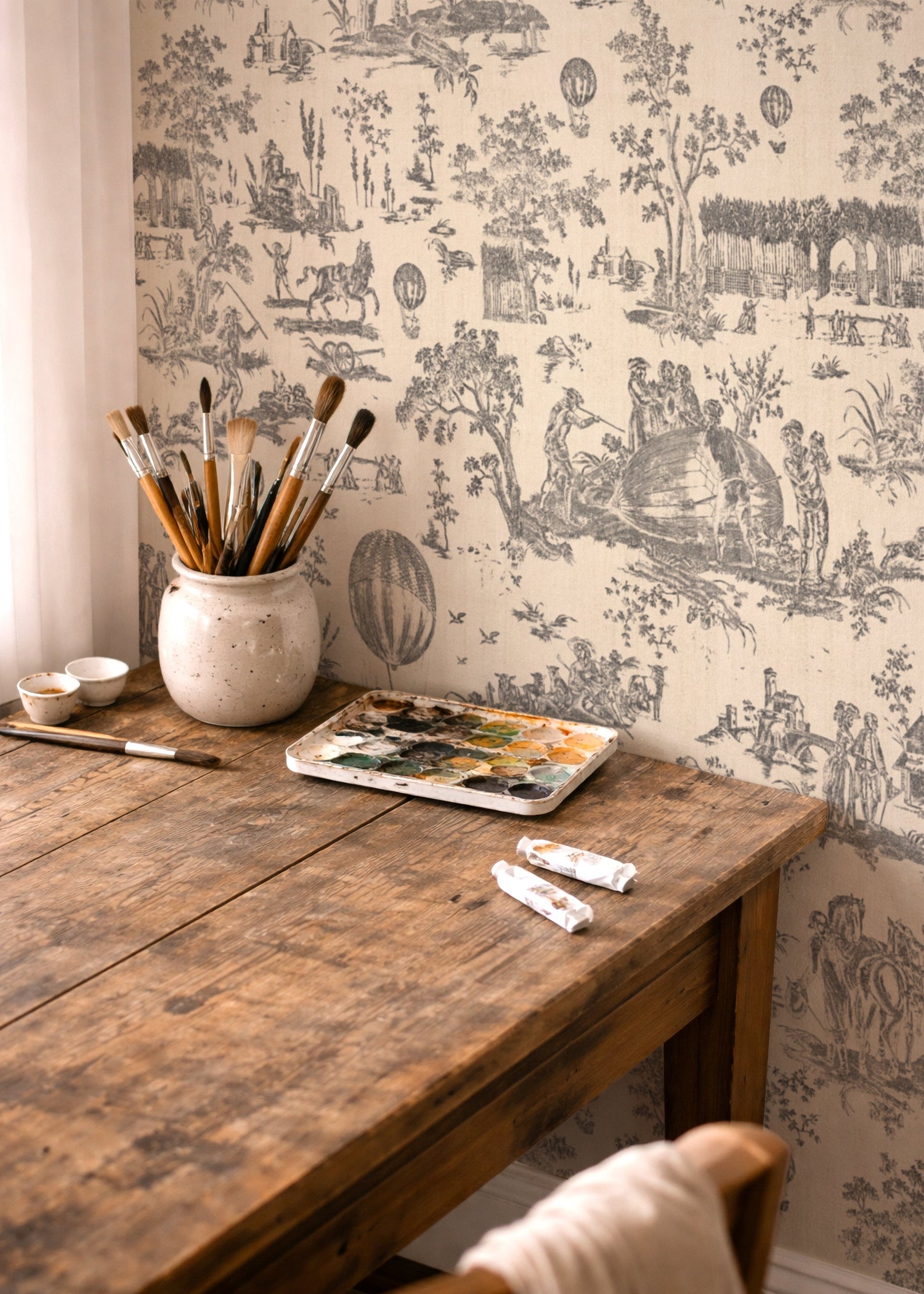 The process balances preservation with adaptation, enhancing clarity, adjusting scale, and ensuring the design flows seamlessly across a wall. The result is immersive and architectural: a historic story translated through modern techniques, where craftsmanship and innovation meet to bring Le Ballon de Gonesse vividly back to life.
