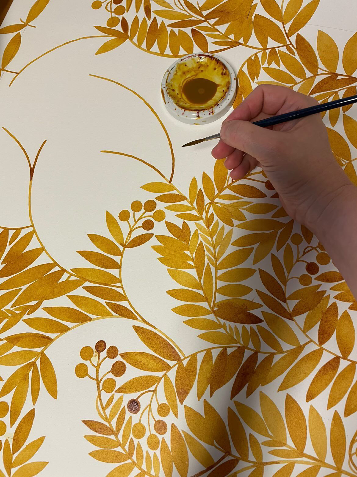 The beautiful wallpapers of Secret Garden were hand drawn by Swedish artist and designer Cecilia Pettersson. Cecilia started the process with paints and paper, before digitalising her creations, developing the details and evolving the patterns over time to what you see today.