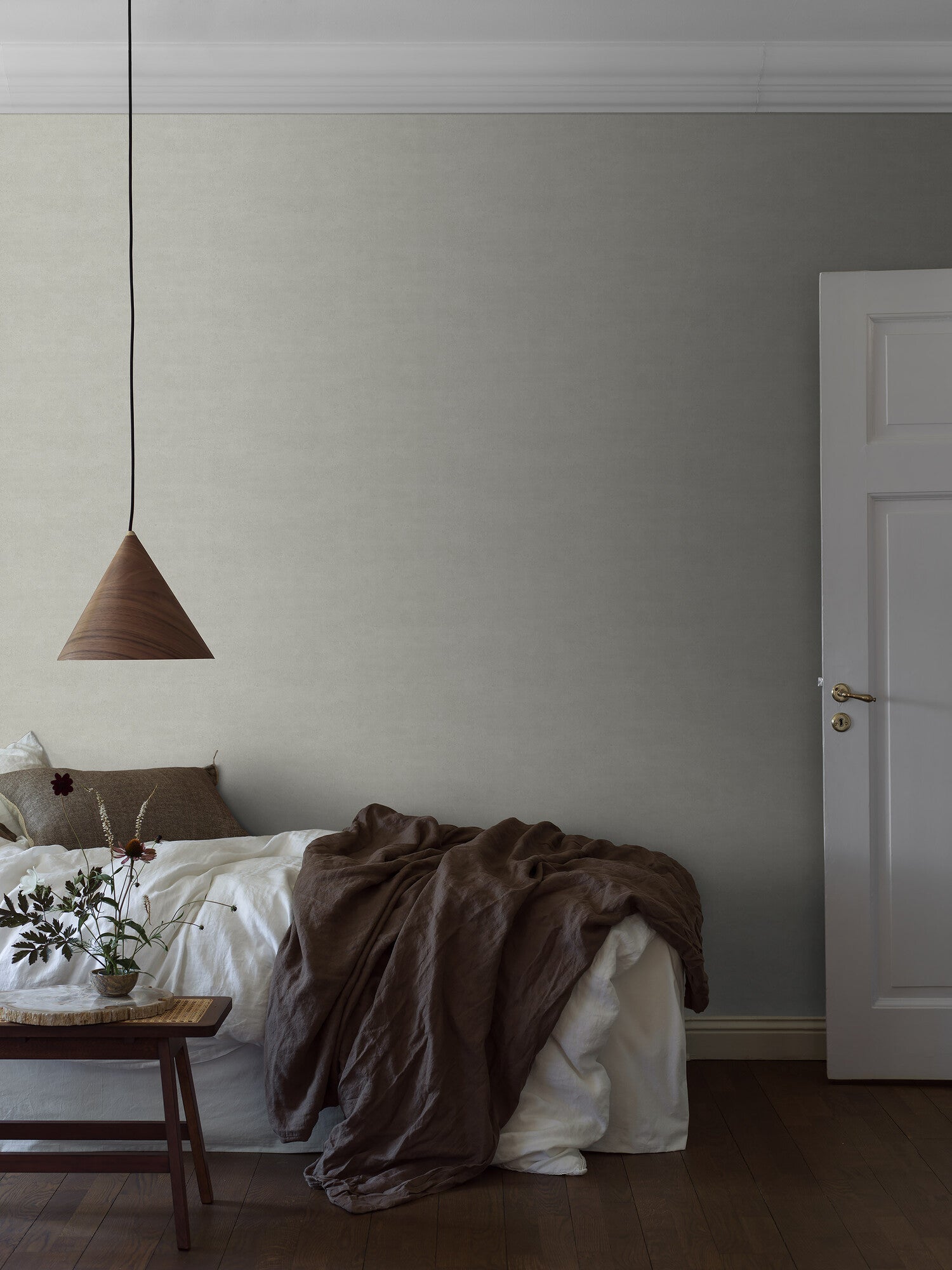 The lime wallpaper Shades Aventurine goes in a dull, icy turquoise shade with a lot of gray in it. Cool and sober but at the same time rustic and cozy, thanks to the powdery, slightly mottled lime surface. Break off with darker details for contrast or match with, for example, cream white, beige and green for calm harmony.