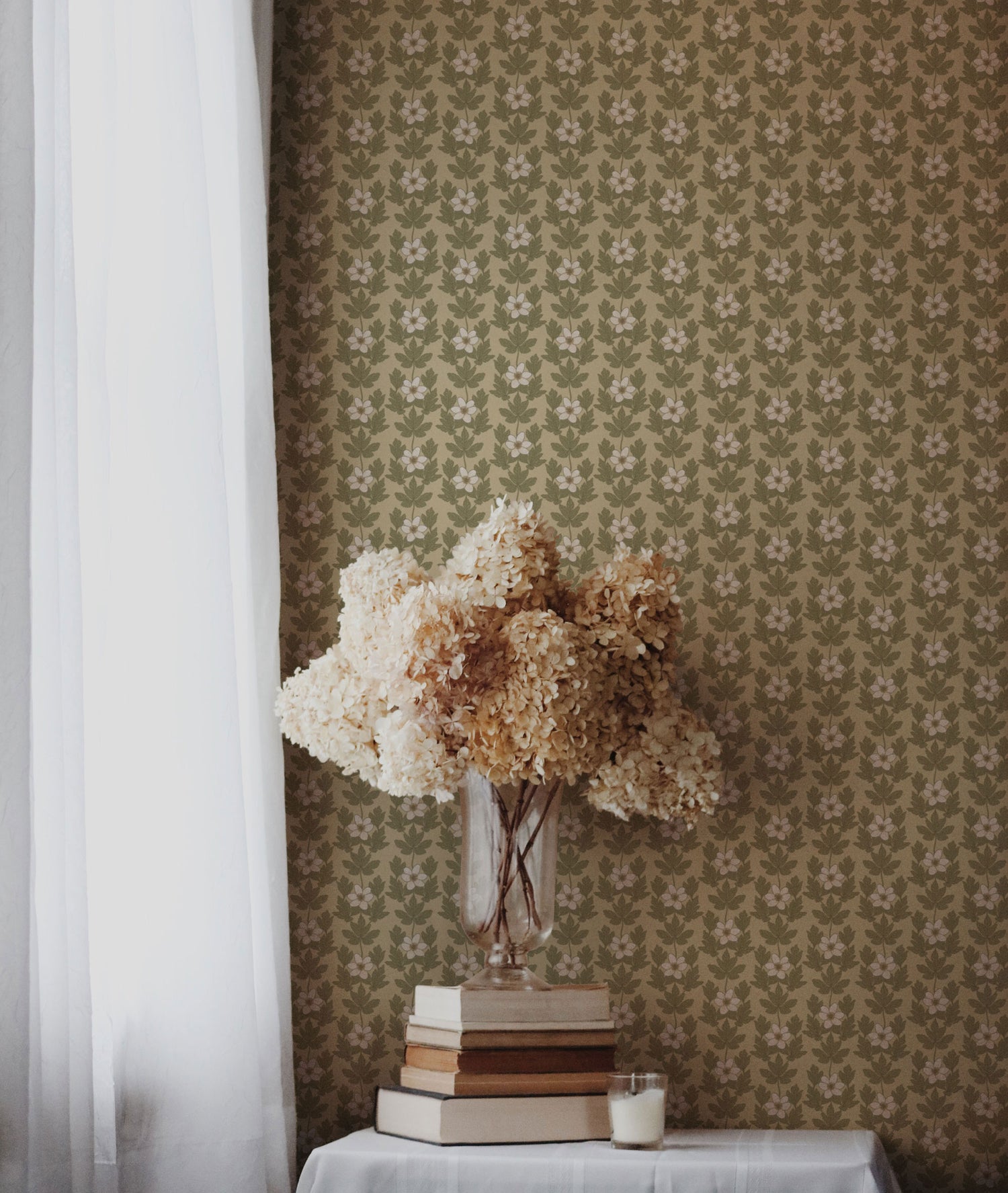 Ce motif charmant mais élégant rassemble toute l'énergie d'un jardin de fleurs animé en août. Le papier peint bicolore subtil, disponible en plusieurs variations de couleur, comprend un mélange de bourgeons, de fleurs et de feuilles.