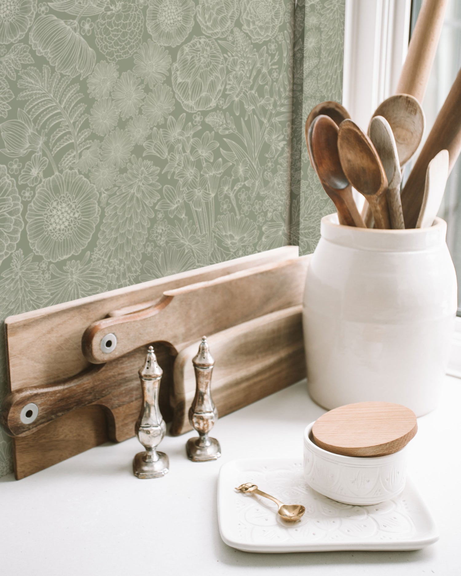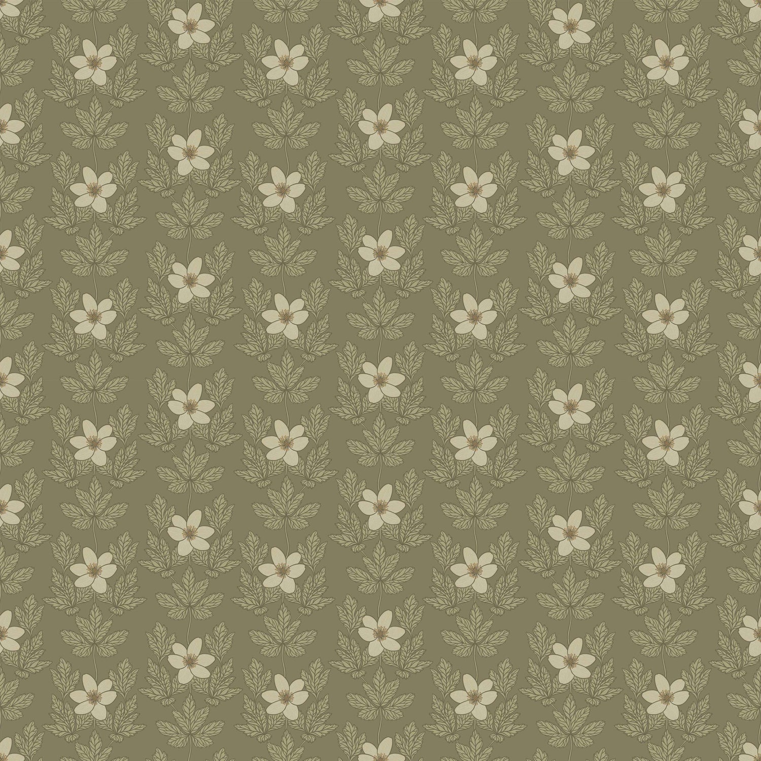 Papier peint Summer Gray - Anémone des bois - Vert