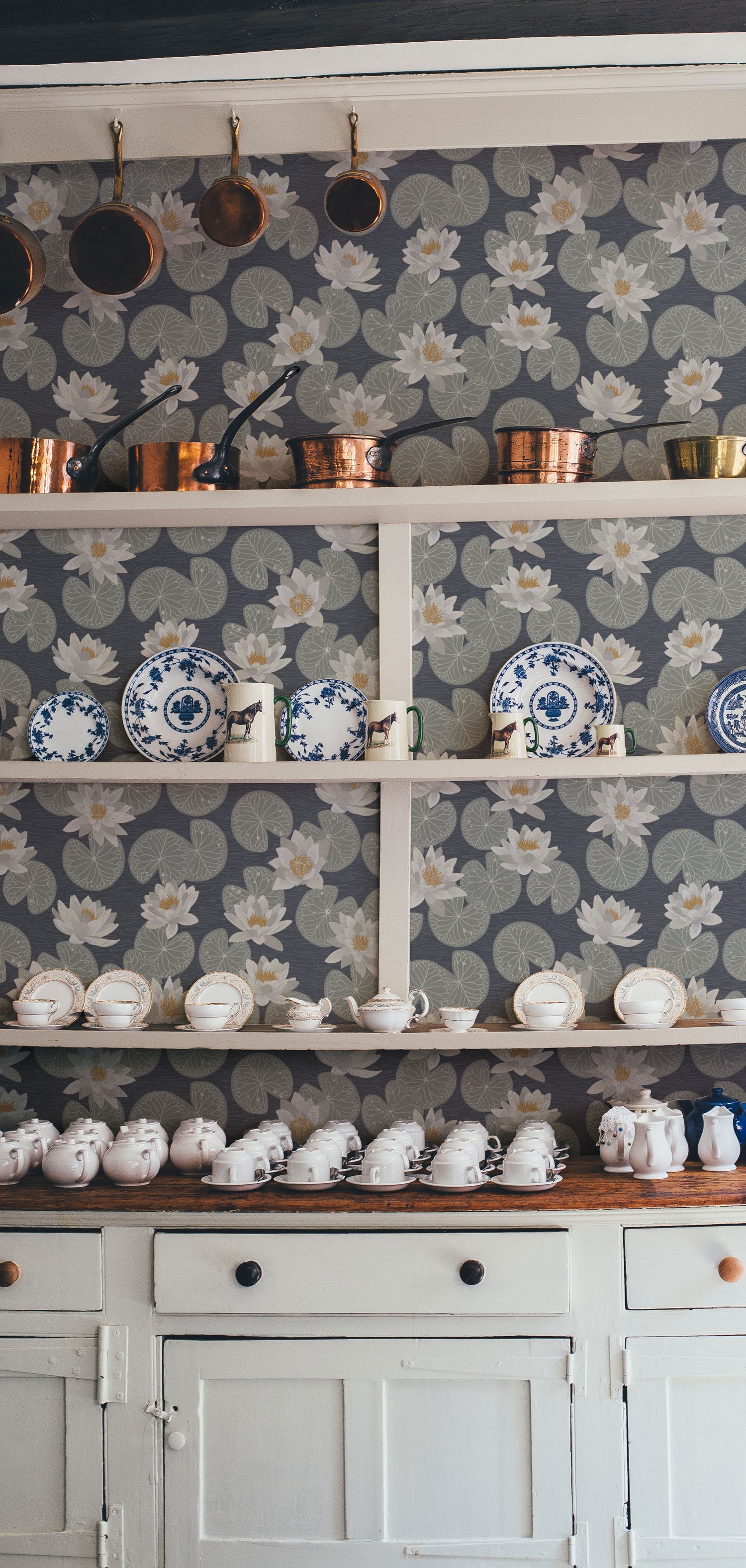 Papier peint Summer Gray - Nénuphars - Bleu