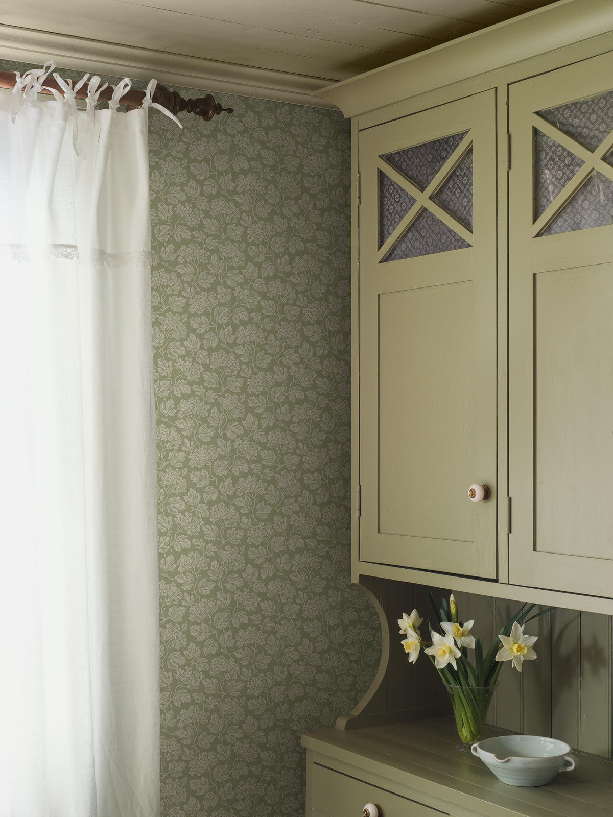 Carefully redrawn from a tapestry wallpaper dating back to the 1920s, this Hagtorn wallpaper in blue blends natural inspiration with a soft structure. It features a dense yet delicate hawthorn foliage design, wrapped in a fine grid that softens the surface. Create a graceful backdrop to your room with the subtle textile character of Hagtorn wallpaper.