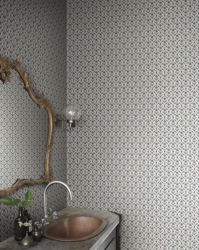 Découvrez le charme du XIXe siècle avec Elena en Bleu. Ce motif de médaillon floral mêle élégance rustique et beauté historique rappelant les motifs populaires et le papier domino. Parfait pour apporter une touche chaleureuse et décorative à tout espace, ce papier peint fait à la fois office de compagnon et de pièce maîtresse, s’intégrant harmonieusement dans divers intérieurs.