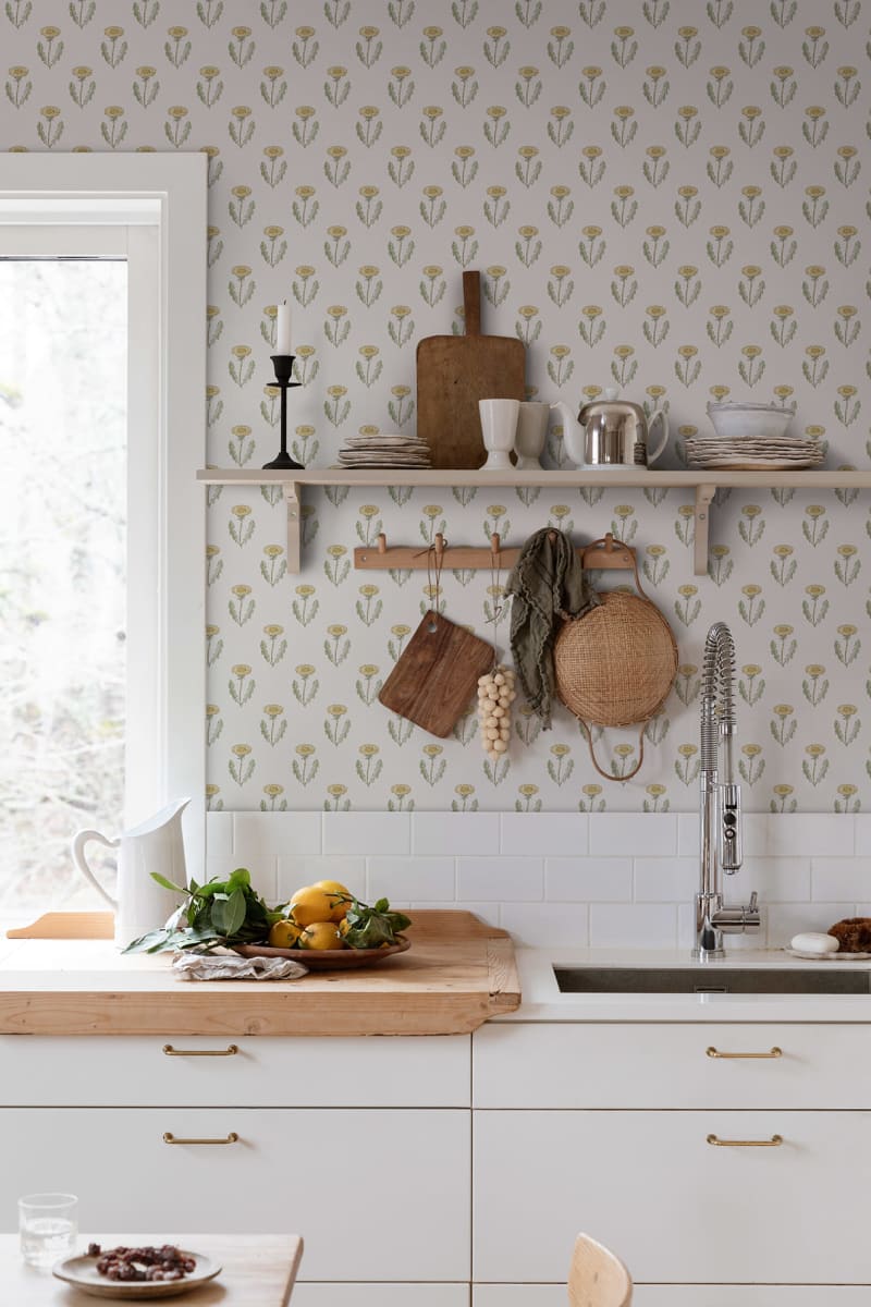 Ce design peint à la main ajoute de la beauté à votre maison. Maskrosen est un design naturel et simple, mais aussi un papier peint qui communique une allure cool et stylée et ajoute de la beauté à votre maison. Le design stylisé du papier peint pissenlit peint à la main est un symbole de la famille Karin & Carl Larsson.