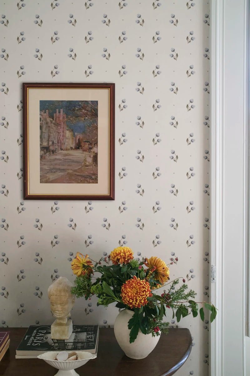 Discover the Sandberg Siv Misty Blue Wallpaper – a unique children's wallpaper that brings the beauty of hawthorn berries to life. Designed by Karolina Kroon, this wallpaper features small clusters of berries on a light, eggshell-like background in the Misty Blue color scheme. The gentle, decorative details make it perfect for creating a calm and inspiring atmosphere in a child's room or nursery, and it complements other patterns in your interior effortlessly.